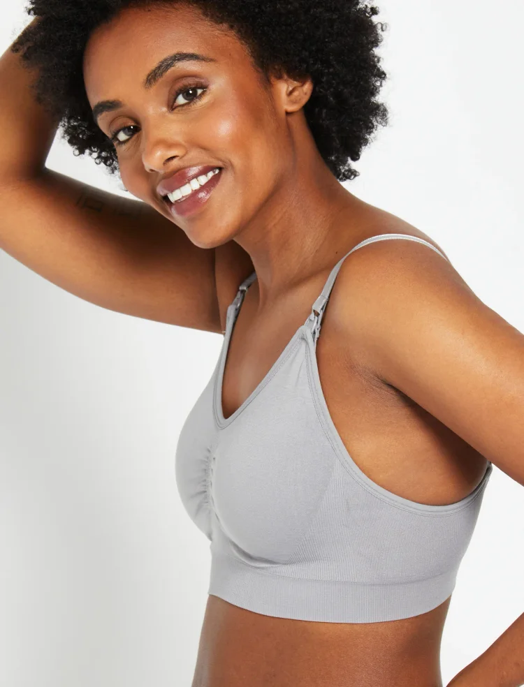 With 500+ 5-star reviews, it's no wonder this bra was voted best maternity and nursing bra by Harper's Bazaar, The Bump and What to Expect! Wear during maternity and into motherhood. In full busted, extended sizes, this seamless nursing bra's soft, supportive stretch grows with you. The full coverage nursing bra's stretchiness makes it so comfortable, it is perfect for everyday wear, and you may even sleep in it. Clip down straps make this full coverage nursing bra extremely convenient for breastfeeding, offering easy one-handed access to feed baby.