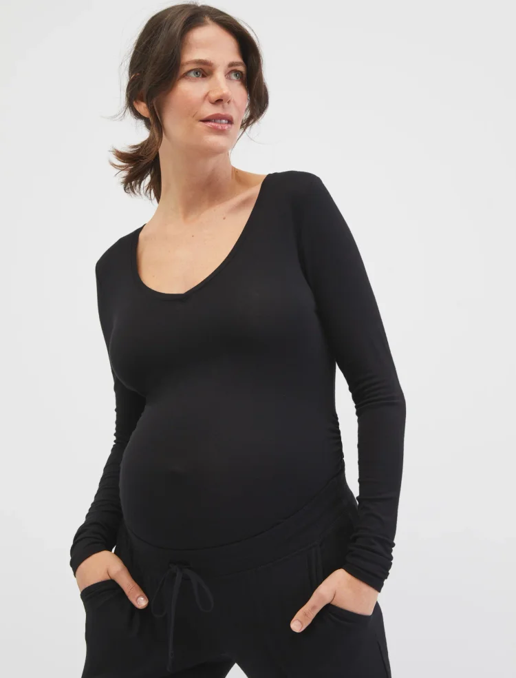 LONG SLEEVE SIDE RUCHED MATERNITY T SHIRT